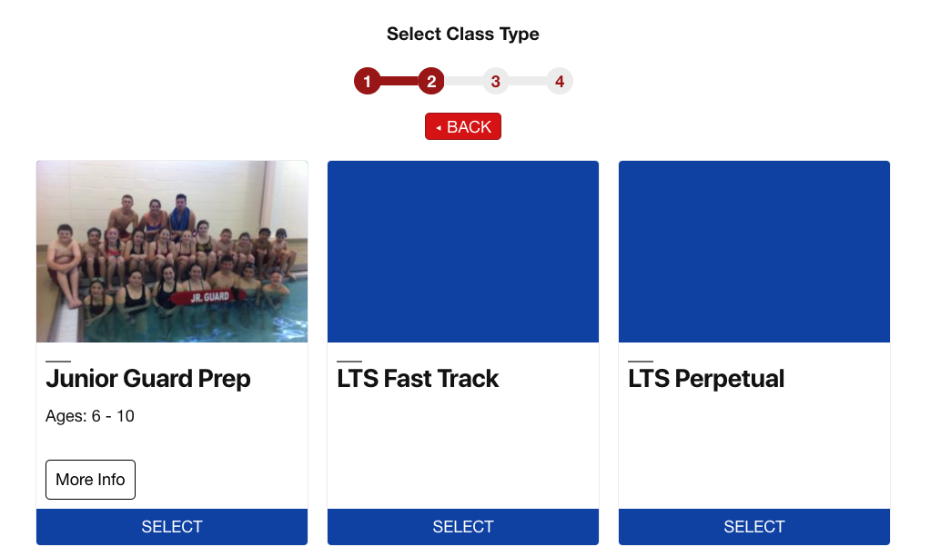 - Category Long Text – This is text that would show up if more info is clicked. Again, look below “Junior Guard Prep” in the example on #1. You see a button that says “more info” when a user clicks this button they will be able to view the extra information you are including here. This is meant to provide context and clarity to users for what to expect from the class. We will give an example of this later.